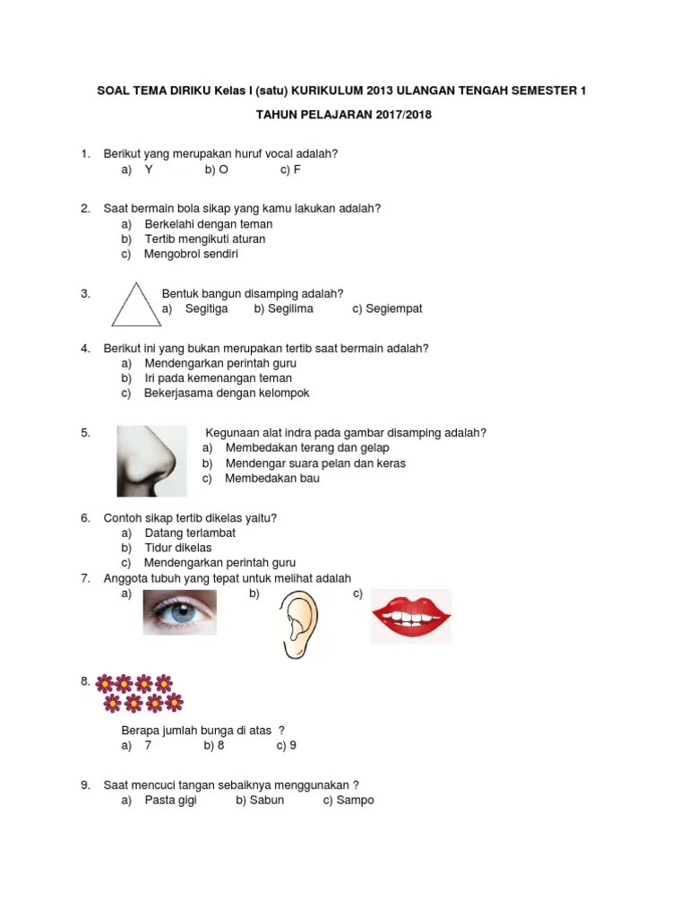 Download soal latihan uts kelas 1 tema 1 dengan judul diriku kurikulum 2013 edisi revisi 2018. Berkenaan buat rekan guru yang memang sedang membutuhkan beberapa contoh soal uts sd kelas i semester 1 kiranya dapat memanfaatkan dokumen yang admin siapkan . Contoh soal tematik kelas 1 tema ke 2 kegemarannku semester 1/ ganjil. Pembahasan kunci jawaban soal uts (ujian tengah semester) pts kelas 1 sd mi tema 1 diriku, semester 1 2021. Website berisi latihan soal tematik kurikulum 2013, soal tema, soal subtema, soal ktsp, soal uas dan uts, soal pas dan pts, download latihan . Di dalam artikel ini, kakak akan paparkan kunci jawaban dari soal uts (ujian tengah semester) kelas 1 jenjang sekolah dasar (sd) dan mi ( . Untuk kelas rendah 1, 2 dan 3 terdapat dua tema yang diujikan sedangkan untuk kelas tinggi terdapat tiga tema yang diujikan. Contoh soal ipa kelas 7 semester 2 peranti guruberikut ini adalah rincian soal uts ipa kelas 7 smpmts semester 1.contoh soal ipa kelas 7. Soal ini kami buat dengan merujuk kepada buku tematik kelas 1 . Ini adalah soal tematik guru kelas, contoh soal atau pun prediksi soal . Berilah tanda silang ( x ) pada huruf a, b, atau c.